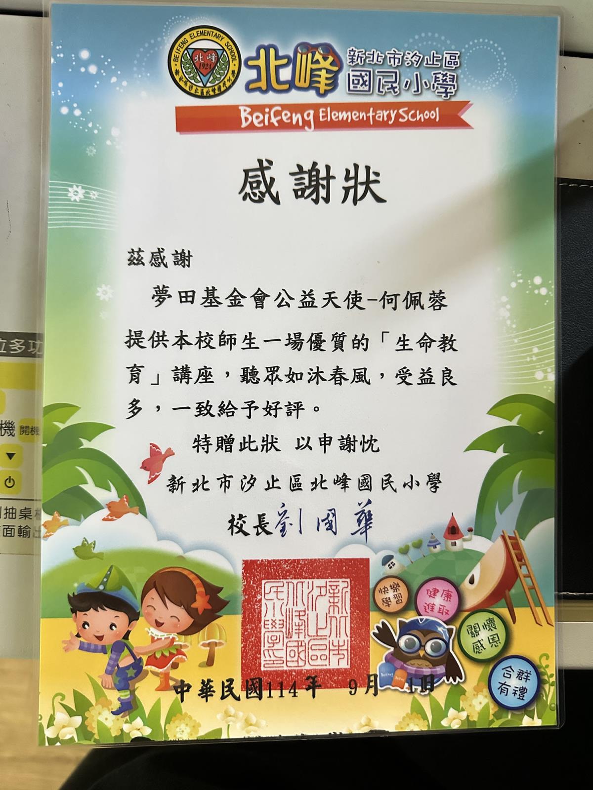 114年夢田公益天使~佩蓉於北峰國小